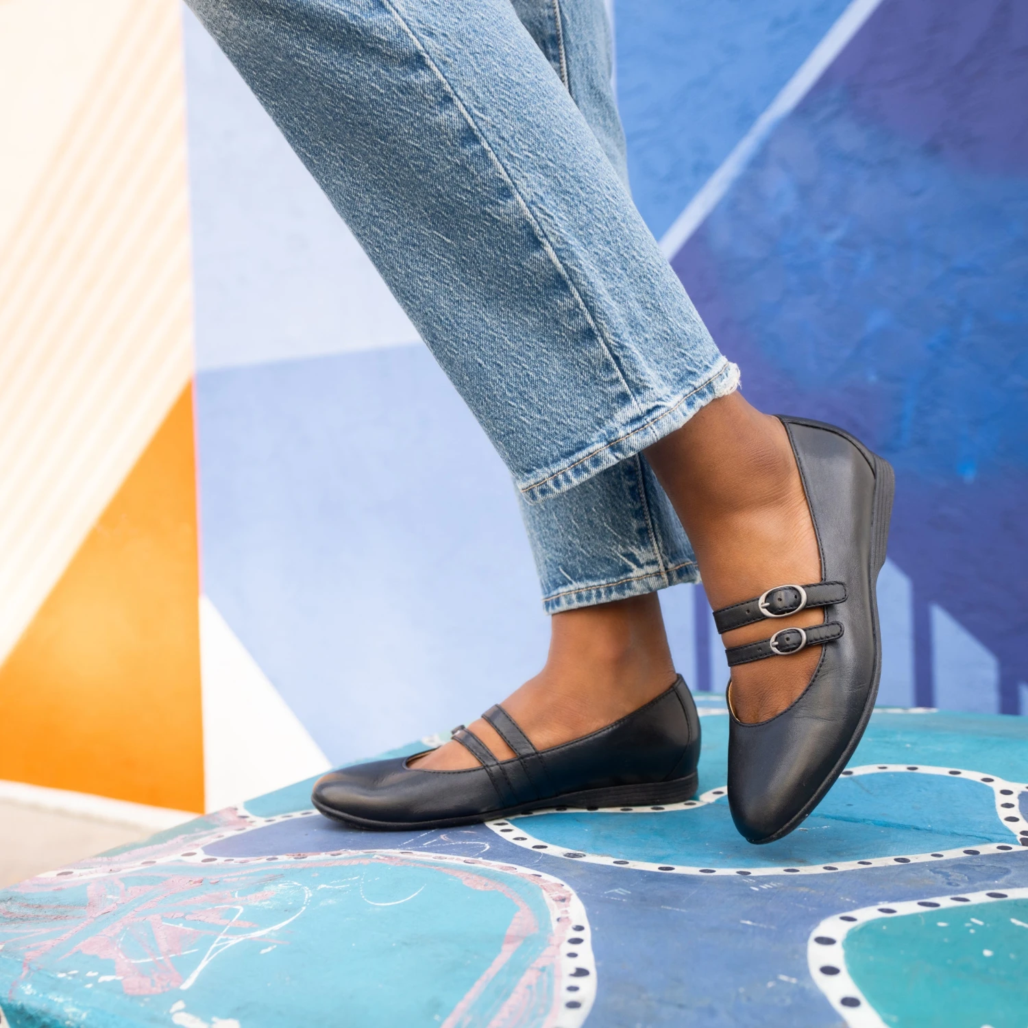 Ballerina flats with adjustable straps make Leeza an elegant and supportive addition to any classy outfit.